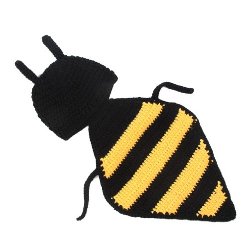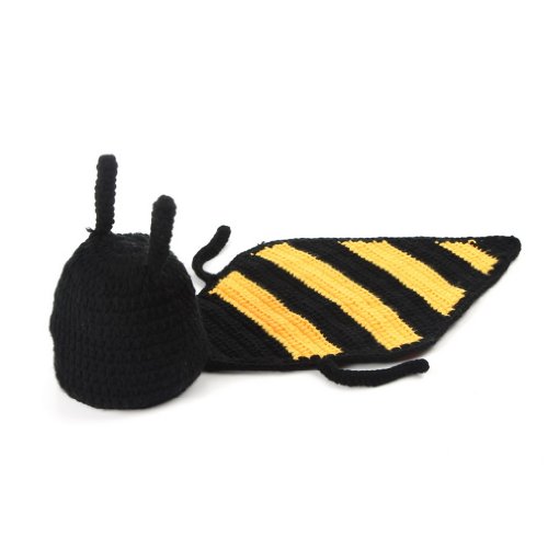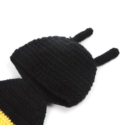 (ビグッド)Bigood ベビー ニット帽子服 着ぐるみ ニット素材制コスチューム 寝相アート 新生児 赤ちゃん 出産祝い ストライプアリ ブラック【並行輸入品】