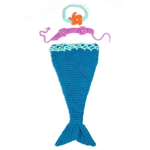 (ビグッド)Bigood ベビー ニット帽子服 着ぐるみ ニット素材制コスチューム 寝相アート 新生児 赤ちゃん 出産祝い 人魚姫造型 ブルー【並行輸入品】