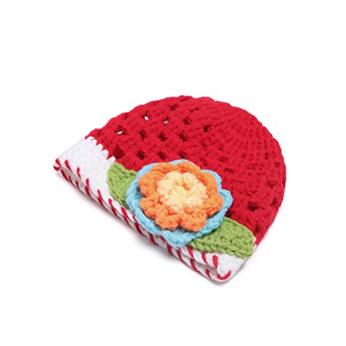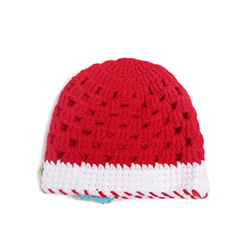 (ビグッド)Bigood 赤ちゃんニット帽 ベビーニット帽 ニットキャップ ベビー キッズ 耳あて 帽子 暖かい帽子 出産祝い秋冬 ビーニーハット花付きレッド+ホワイト