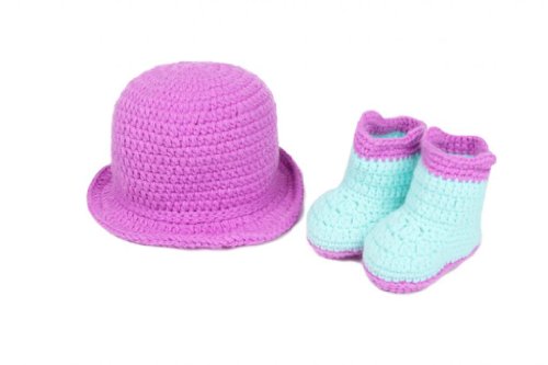 (ビグッド)Bigood ベビー ニット帽子服 着ぐるみ ニット素材制コスチューム 寝相アート 新生児 赤ちゃん 出産祝い ニット帽子+靴セット薄桃色+ライトブルー【並行輸入品】