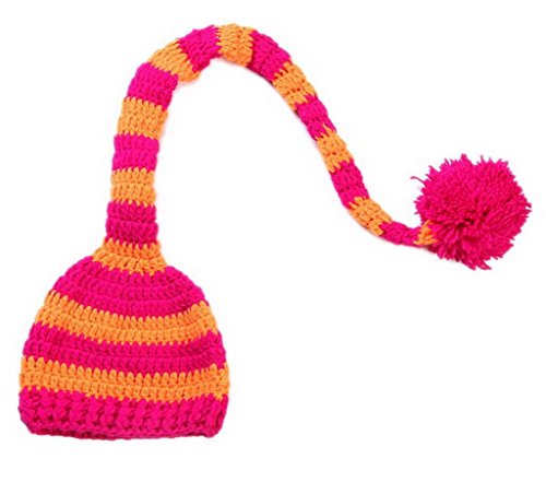 (ビグッド)Bigood ベビー ニット帽子服 着ぐるみ ニット素材制コスチューム 寝相アート 新生児 赤ちゃん 出産祝い ボーダー柄 ボンボン付きのニット帽子 ローズ色とオレンジ【並行輸入品】