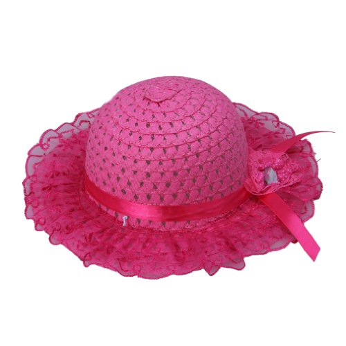 (ビグッド)Bigood 可愛い 麦わら帽子 子供用ハット キッズ 帽子 レース ペーパーハットサンバイザー子供 つば広帽 ボーラーハットアウトドア お出かけに ローズ