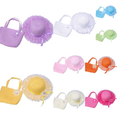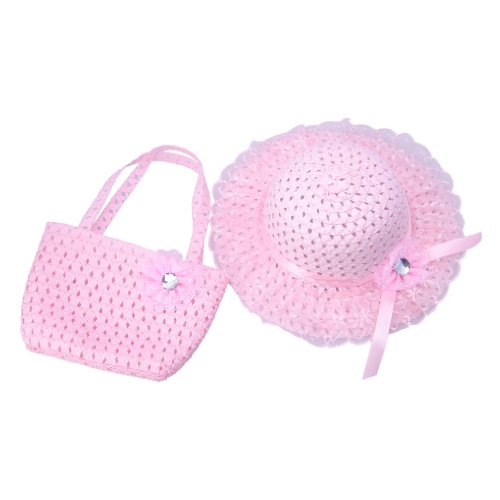 (ビグッド)Bigood 帽子 子供 ハンドバッグ 麦わら帽子 バッグセット ペーパーハット サンバイザー女の子 つば広帽 ボーラーハットリボン付き アウトドア お出かけに ピンク