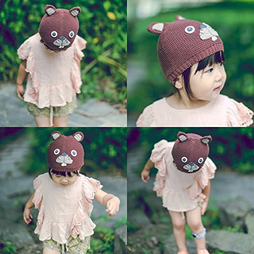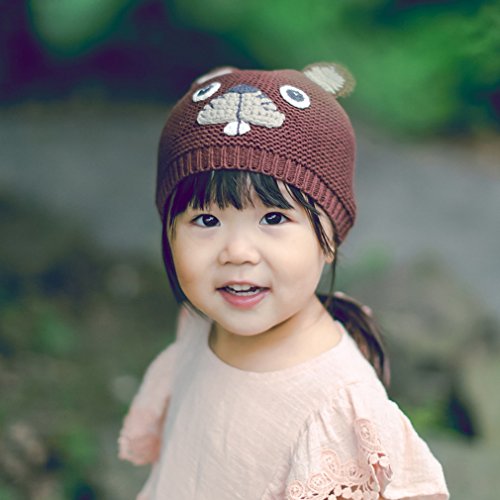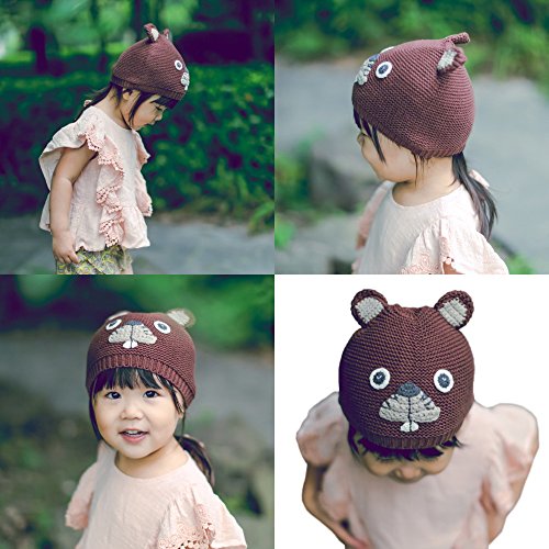 (ビグッド)Bigood キッズ用 帽子 ニットキャップ 可愛いリスちゃん柄 ニット帽子 人気のある 秋冬 防寒 お散歩 男の子 女の子 赤ちゃん帽子 ブラウンS