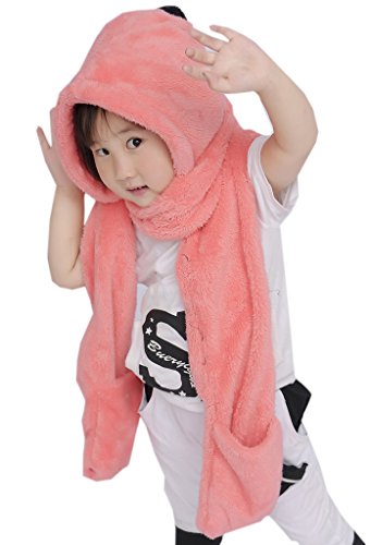 (ビグッド)Bigood 赤ちゃん 子供 帽子+マフラー+手袋セット キャップ 帽子 男の子 女の子 可愛いぬいぐるみキャップ 秋冬 あったかな ベビー用 ボールボール付 キッズ ピンク