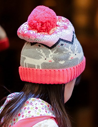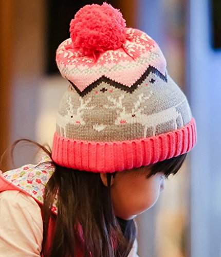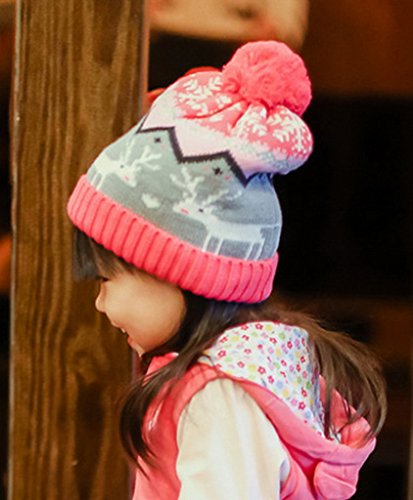 (ビグッド)Bigood 可愛い ニット帽 キッズ 子供 帽子 ボンボン付き ニットワッチ 女の子 男の子 赤ちゃん ベビー ニットキャップ 防寒 秋冬 クリスマス トナカイ 北欧風 L