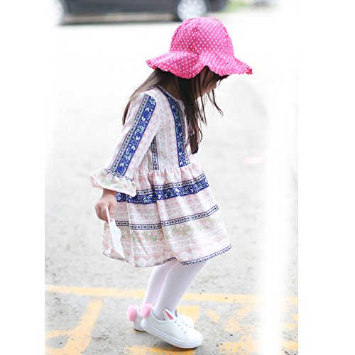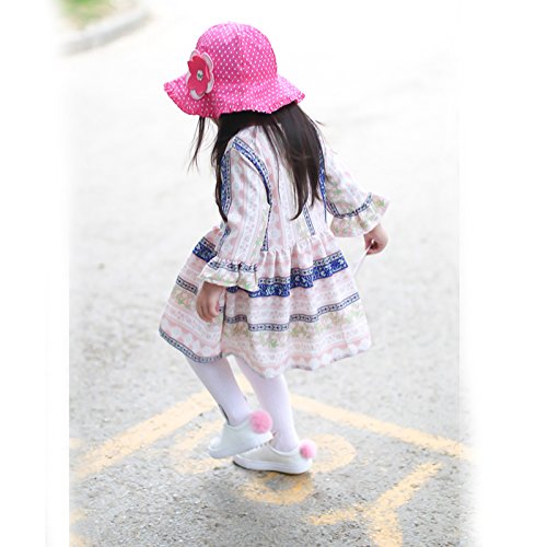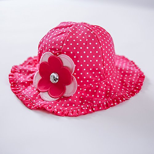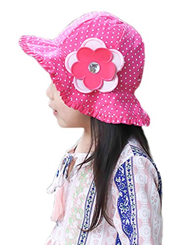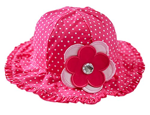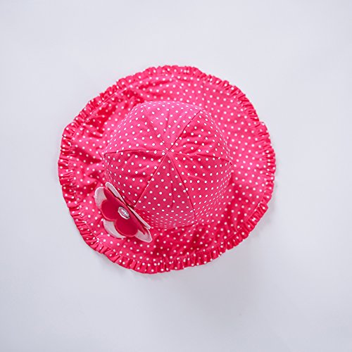 (ビグッド)Bigood キッズ 帽子 サファリハット 女の子 女児 子供 赤ちゃん キュート 水玉柄 コットンキャップ 子供サンバイザー 保育園 日焼け止め 花付き(ローズ色・54cm)