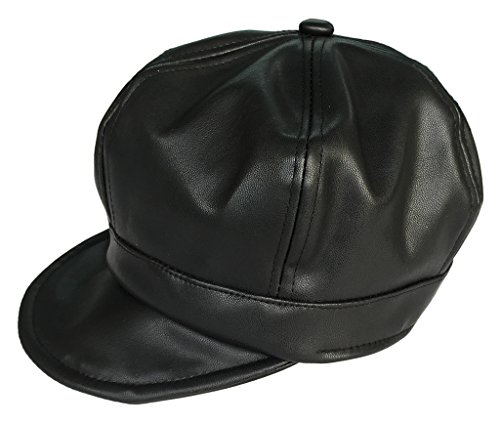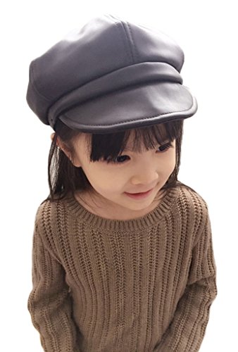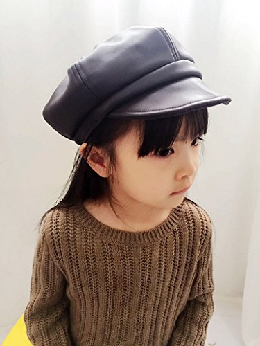 (ビグッド)Bigood 女の子 子供 ベレー帽 ハット PU ハンチング帽 キッズ ガールズ キャップ キャスケット 通学 お出かけ カジュアル アウトドア(ブラック)