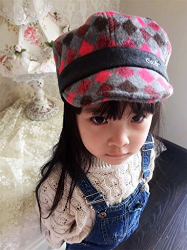 (ビグッド)Bigood 暖かい 子供用 ベレー帽 チェック柄 ハンチング帽 キッズ 女の子 キャップ ハット キャスケット アウトドア 通学 カジュアル(レッド)