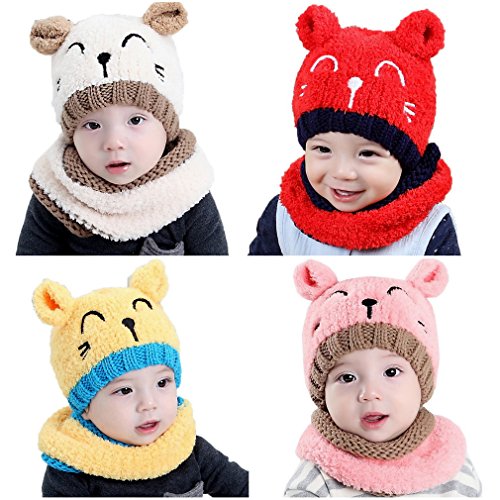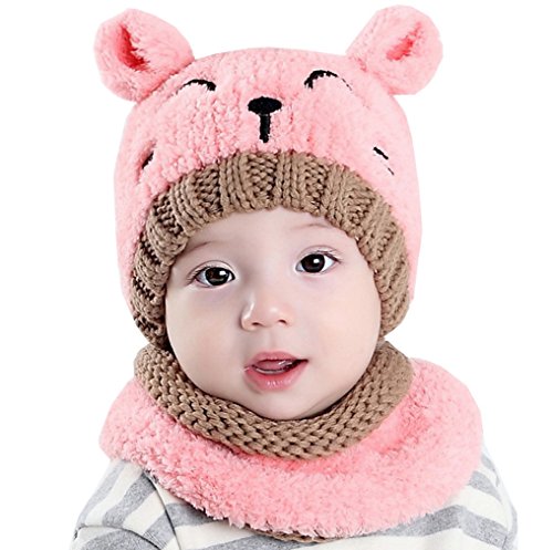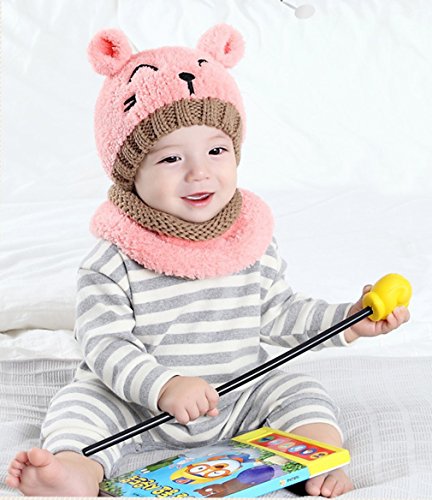 (ビグッド)Bigood かわいい ベビー 帽子+マフラー2点セット 赤ちゃん ニットキャップ 耳付き ネックウォーマー 秋 冬 防寒 ニット帽子 暖かい お出かけ(ピンクC)