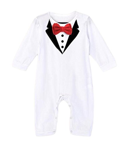 (ビグッド)Bigood ベビー 赤ちゃん ジャンプスーツ 男の子 カバーオール ロンパース タキシード風 出産祝い プレゼント(ホワイト・90)