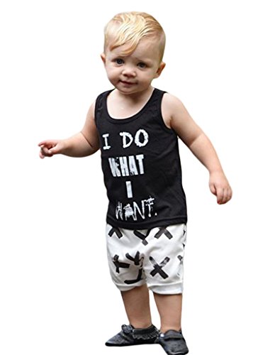 (ビグッド)Bigood 赤ちゃん ベビー 男の子 タンクトップ ズボン 上下 2点セット セットアップ カジュアル 子供服(黒・80)