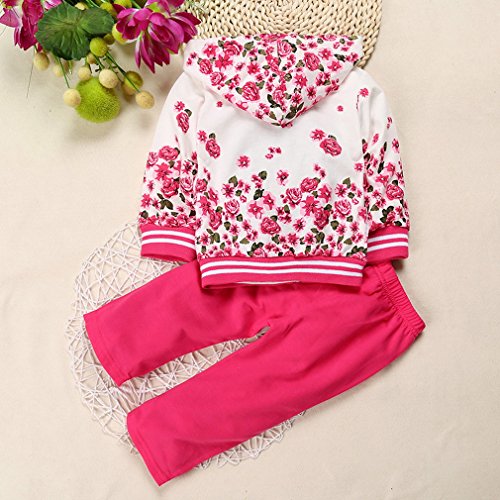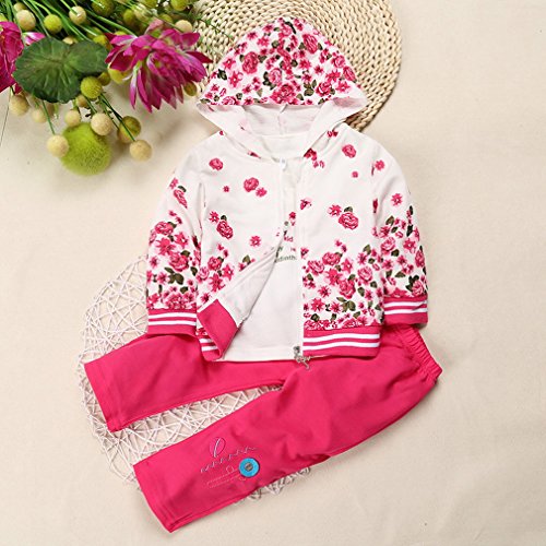 (ビグッド)Bigood かわいい ベビー 女の子 花柄 Tシャツ+アウター+ロングパンツ 上下 3点セット セットアップ カジュアル 出産祝い(ローズ色・80)