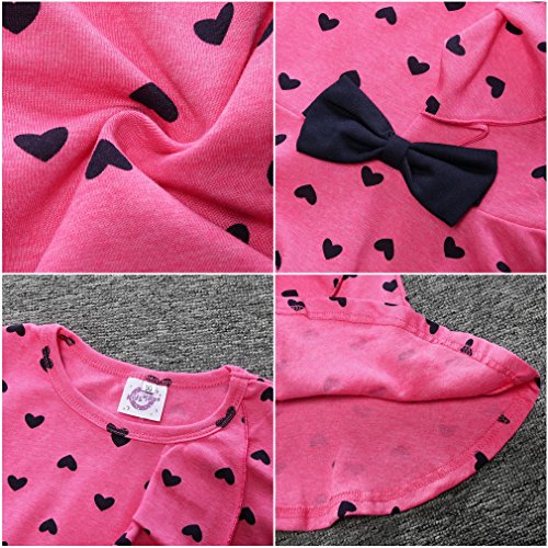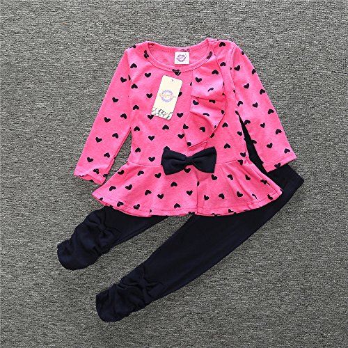 (ビグッド)Bigood かわいい 女の子 Tシャツ+ロングパンツ 上下 2点セット セットアップ ハート柄 フリル 子供服 カジュアル(ローズ色・90)