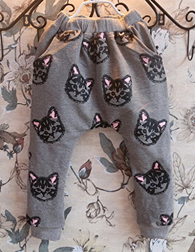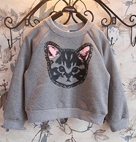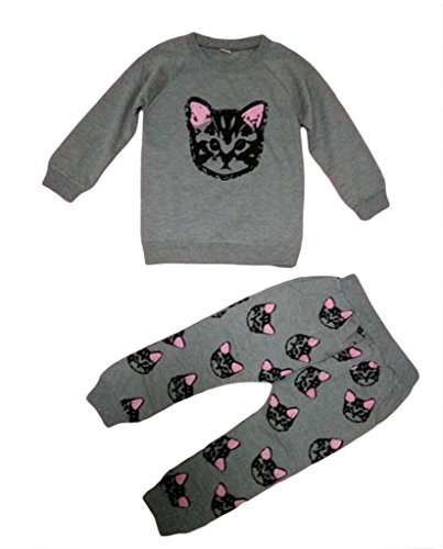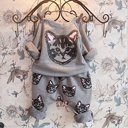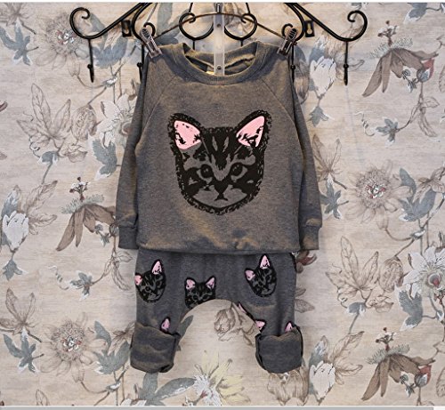 (ビグッド)Bigood 可愛い ベビー 女の子 男の子 ネコ シャツ ロングパンツ 上下 2点セット セットアップ カジュアル ベビー服(グレー・15)