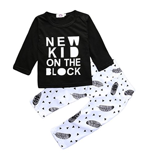 (ビグッド)Bigood 赤ちゃん ベビー服 上下 2点セット 可愛い 男の子 女の子 Tシャツ+ロングパンツ 上下 セットアップ 出産祝い(ブラック・100)