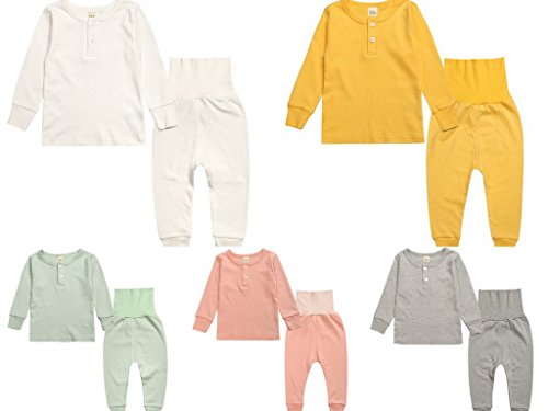 (ビグッド)Bigood 子供服 上下 2点セット 無地 男の子 女の子 Tシャツ+ロングパンツ 上下 セットアップ カジュアル(オレンジ・100)