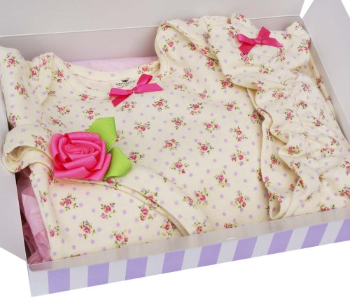 ビジュー&ビー オリジナルギフトセット ドットと小花シリーズ クリーム サイズ60、70、80(ロンパース+レッグウォーマー+ヘアバンド) BBTAM02-CR60