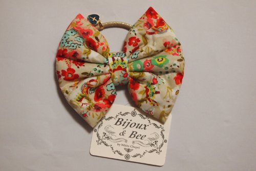 Bijoux&Bee(ビジューアンドビー)ホース&フラワー柄メダイ付リボンシュシュ(ママ用) 【ママ】 one ベージュ