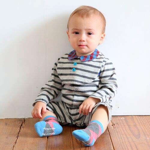 Bijoux & Bee(ビジュー&ビー) キモウボーダー前開きロンパース<日本製> グレー M(70-80cm)