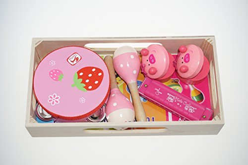 Bilipala Baby Music Toys, Wooden Maraca, harmonica, tambourine and Castanets Pink [並行輸入品]