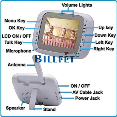 Billfet ベビーモニター 3.5" Color LCD Rechargeable Wireless 2.4 GHz Digital Video Baby Monitor with Night Vision, Temperature Monitoring, Talk to Baby Two-way Intercom, Remote Camera Pan, Tilt, and Zoom, Lullaby, Auto Scan Working Cameras, 4 Channels