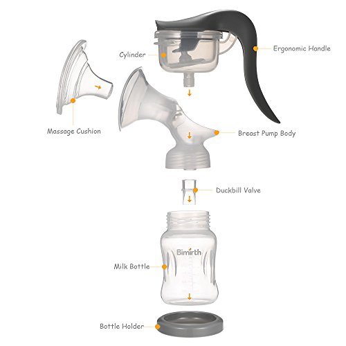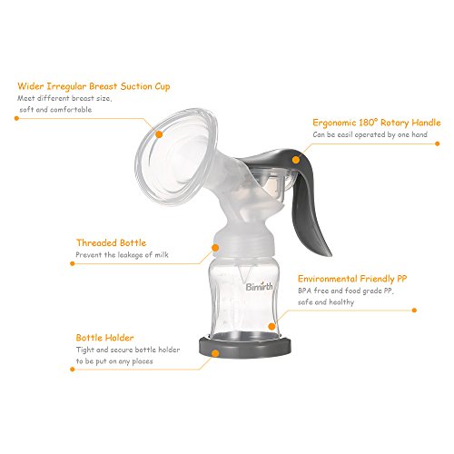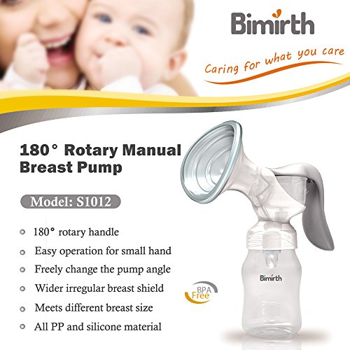 Bimirth 手動乳房ポンプ セーフ BPAフリー 180°回転 快適なソフト 軽量 大きいサイズ 乳解消剤 ポータブルミルクポンプ