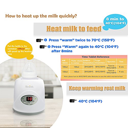 Bimirth 多機能 実用ミルクヒーター 安全なBPAフリー 一定加熱 ベビーボトルウォーマー 米国のプラグイン用