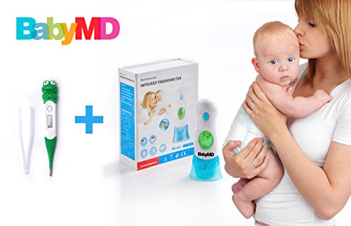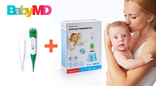 BabyMD 2 Piece Set Family 8 in 1 Thermometer ,Baby/Child/Adult Temp Checking Devices Multinational Thermometer For Children + Cute Frogy Froggy Head Digital Forehead & Ear Thermometer by Thermotalix