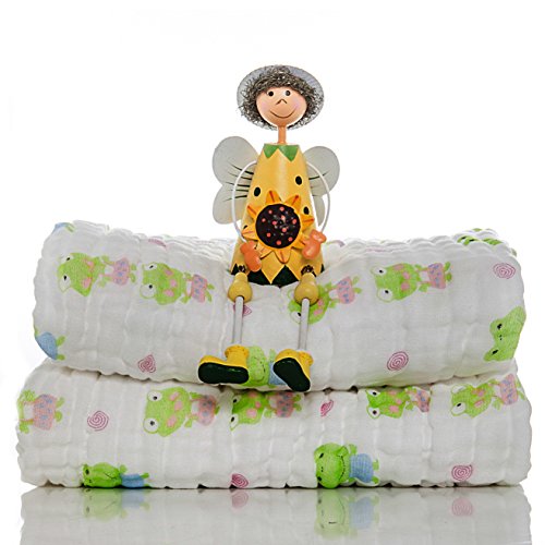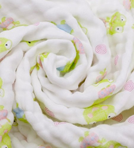Binztec ベビーバスタオル 天然有機コットン6層ガーゼ 105cm*105cm (かえる)