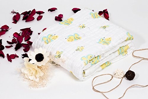 Binztec ベビーバスタオル 柔らかく 天然有機コットン6層ガーゼ (はち)