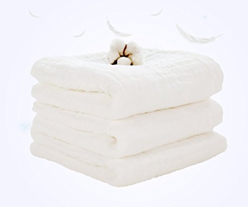 Binztec ベビーバスタオル 柔らかく 天然有機コットン6層ガーゼ 白い (白い)
