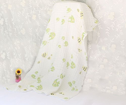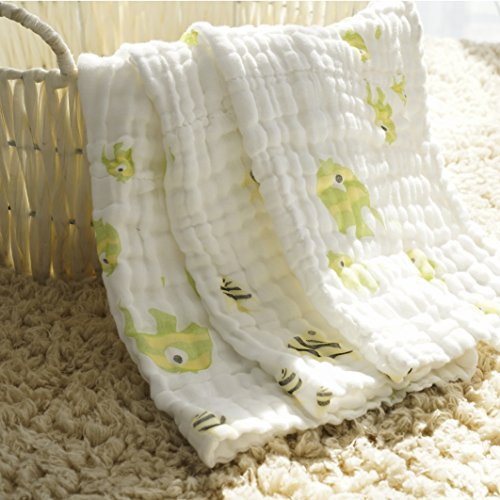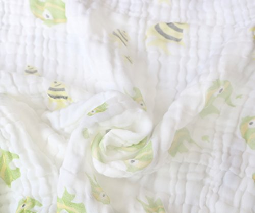 Binztec ベビーバスタオル 柔らかく 天然有機コットン6層ガーゼ (魚)
