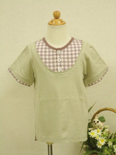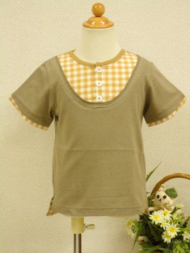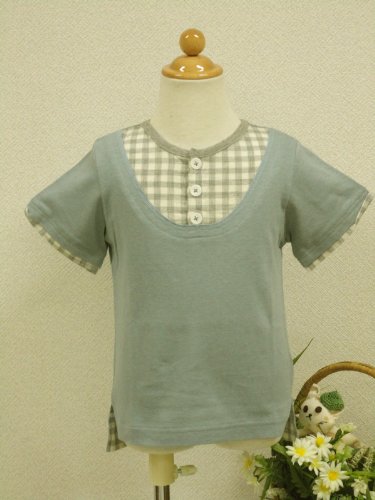 チェックの布帛素材と天竺の、レイヤード風Tシャツです。チェックの素材が、とっても涼しげです。 綿 100%