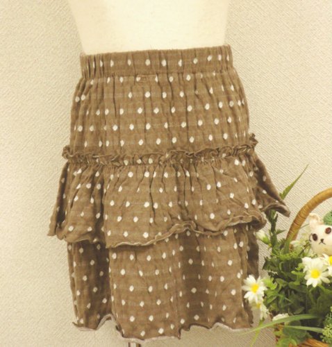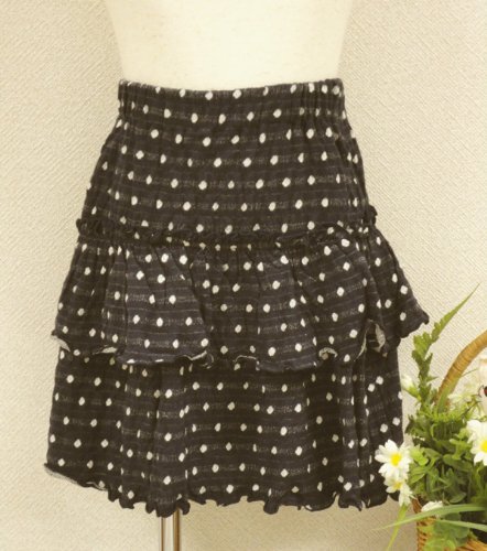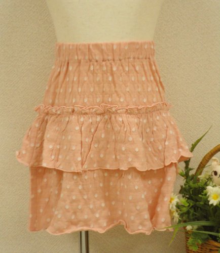 カットソーのひらひら水玉スカートです。シンプルなTシャツやタンクトップと合わせるだけで、夏のガーリースタイルが完成