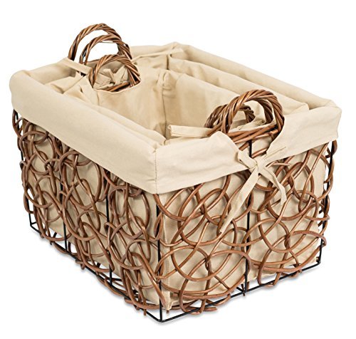 Home Essential: the willow basket set is ideal for any home or office space;Decorative Design: attractively woven willow frame with dual handles paired with cotton/polyester canvas blend adds a nice elegant look to a room;Multi-Purpose: Used for decor, open storage or lined to allow for smaller items. Ideal for use in living room throws, bathroom decor, bedroom bin, etc;Styles: Includes 3 rectangular shape baskets that stack easily inside one another;Approximate Dimensions: 1) 13 Width x 9 Depth x 11 Height; 2) 16 Width x 11 Depth x 13 Height; 3) 18 Width x 13.5 Depth x 14 Height