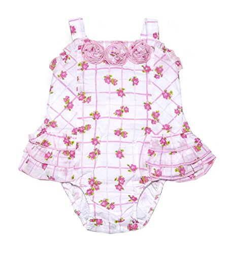 彼女が遊ぶが太陽に合わせてビーチやプールでこのかわいさRosieベビースーツでビスコッティ。フリルのトリムとロゼット詳細」を参照してください。これは水着ではありませ