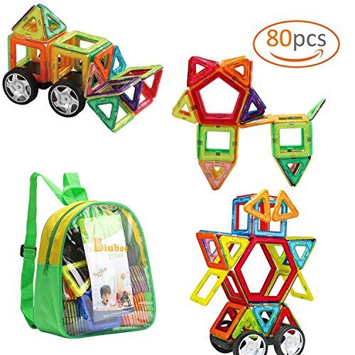 Biubee磁石ブロック マグネット 立体パズル(80ピース) 積み木 知育玩具 パズル ブロック お祝いプレゼント 子供おもちゃ 創造力 想像力