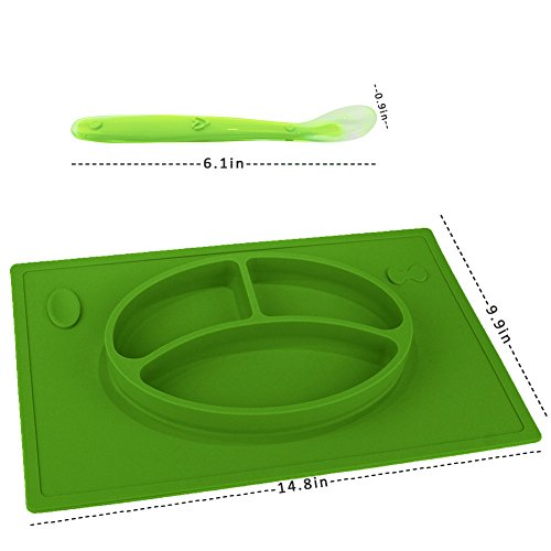 Biubee One-Piece Silicone Placemat + Plate with Spoon for Baby and Toddlers (green) by Biubee