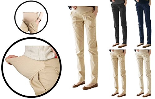 Black Omen(ブラックオーメン)伸縮性あり マタニティ用 アジャスター付き ストレッチ コットン パンツ(オールシーズン対応)妊婦さん用 綿パン 仕事着 (ボトムス ズボン)(肌色(ベージュ)、S)b002/be/s