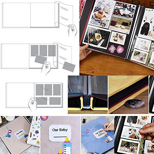 - ブラック自己接着性ページには、ページに自己接着する透明なプラスチックオーバーレイがあります