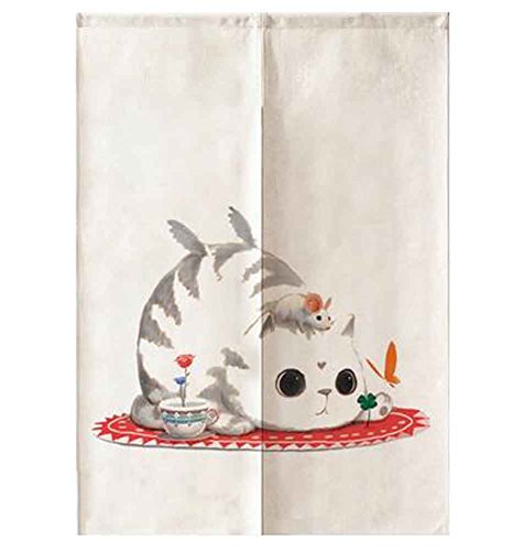 Cute Japanese Noren Doorway Curtain、リネン素材、85 x 120 cm [ I ]
