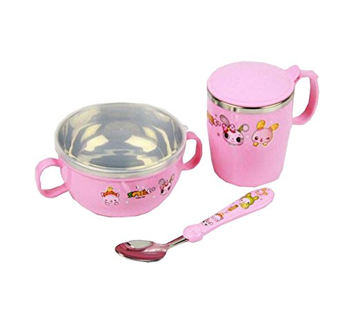 赤ちゃんの家庭料理セットピンクボウルカップスプーン