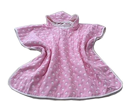 キッズドットピンクのためのソフトコットンベビーフード付きバスタオルマントバスローブ