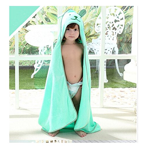 ベビー ソフト コットン 通気性 バスタオル キッズ バスクロス クローク バスローブ 0-7歳(ライトグリーン)