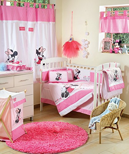 Disney Baby Minnieマウス花ベビーベッド寝具セット 4PC+1xCURTAIN ピンク DAME-7297219048678-4PC+1xCURTAIN