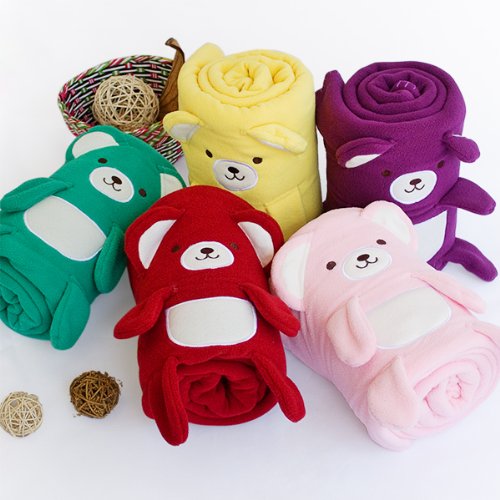 [ Happy Bear – ピンク]刺繍入りアップリケコーラルフリースBaby Throw Blanket ( 42.5 by 59.1 inches )
