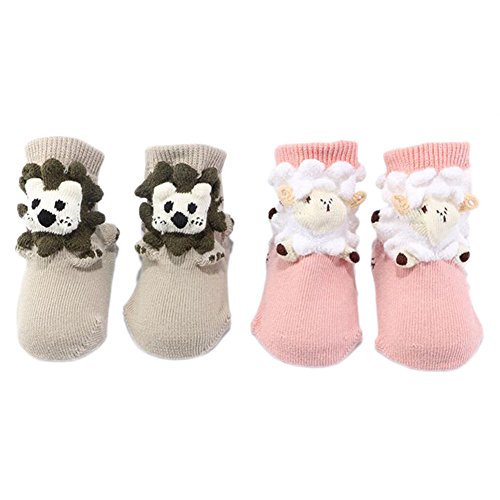 2ペアノンスリップ新生児幼児靴下ウォームストッキングベビーギフト9-11.5 0-1歳のCMベビーライオン+羊