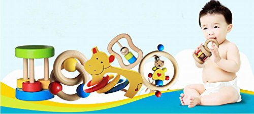 クリエイティブ赤ちゃんの楽器の漫画は、木製ハンドベル赤ちゃんのおもちゃガラガラ