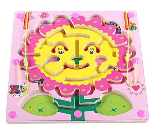 両面木製キッズのおもちゃの迷路パズル教育迷路ゲームルードゲーム、花